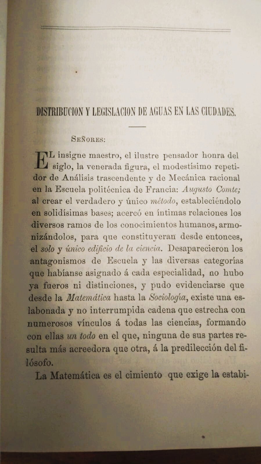 CONCURSO CIENTIFICO MEXICANO. ASOCIACIÓN DE INGENIEROS Y ARQUITECTOS. LEGISLACIÓN Y DISTRIBUCIÓN DE AGUAS EN LAS CIUDADES DE LA REPÚBLICA MEXICANA.